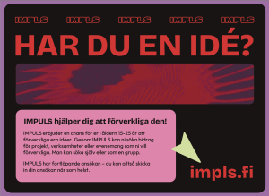 Impuls är ett helt nytt bidrag för unga mellan 15 och 25 år som vill förverkliga sina egna idéer i projektform. Bakom satsningen som administreras